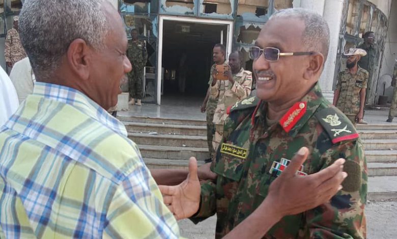 وفي الصورة اللواء محي الدين سيد احمد يرحب بالزميل محفوظ عابدين من داخل القيادة العامة بالخرطوم