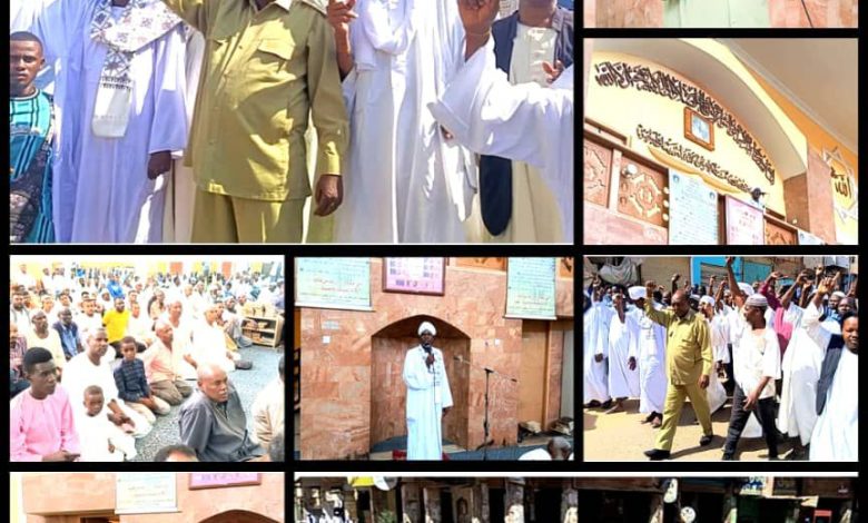 الشيخ الدكتور عبدالباسط دليل مدير الشؤون الدينية بالمحلية والذي أم المصليين دعا لوحدة الصف وجمع الكلمة والوقوف خلف القوات المسلحة وجهاز المخابرات العامة وقوات الشرطة والقوات المشترك والمقاومة الشعبية والمستنفرين حتى تحرير آخر شبر من أرض الوطن من دنس الجنجويد ومرتزقتهم.