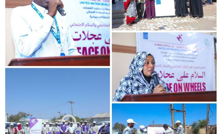دشنت منظمة “هيومن أبيل” البريطانية – مكتب القضارف ، مشروع تعزيز التقارب المجتمعي والسلام الإجتماعي “السلام على العجلات” بدعم من برنامج الأمم المتحدة الإنمائي UNDP وبشراكة مع وزارة الرعاية الإجتماعية بالولاية.