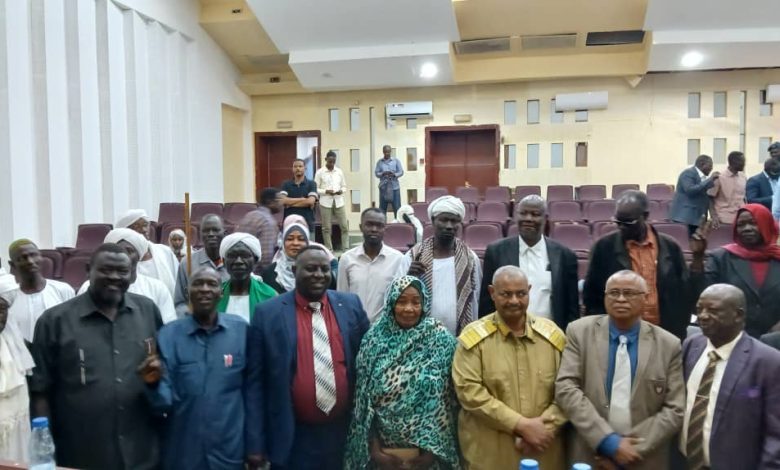 خلال كلمات المتحدثين، وفي مقدمتهم الأستاذ/ جبر الدار التوم رئيس اللجنة العليا للإسناد المدني، والمك/ عبدالله قيدوم، وممثلي مجموعة المحامين/ د. عادل دلدوم الختيم، وسعيد ساكن الفيل.