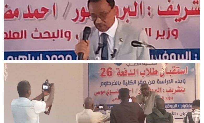 وكان د. عمر الجيلي عميد كلية الطب بالجامعة وعميد شئون الطلاب وممثل رابطة طلاب الكلية بالجامعة قد رحبوا بطلاب الدفعة 26 واكد عميد الطلاب ان الجامعة ستعمل على تحقيق احلام الطلاب ومتطلباتهم الى ان يتحقق الهدف المطلوب.